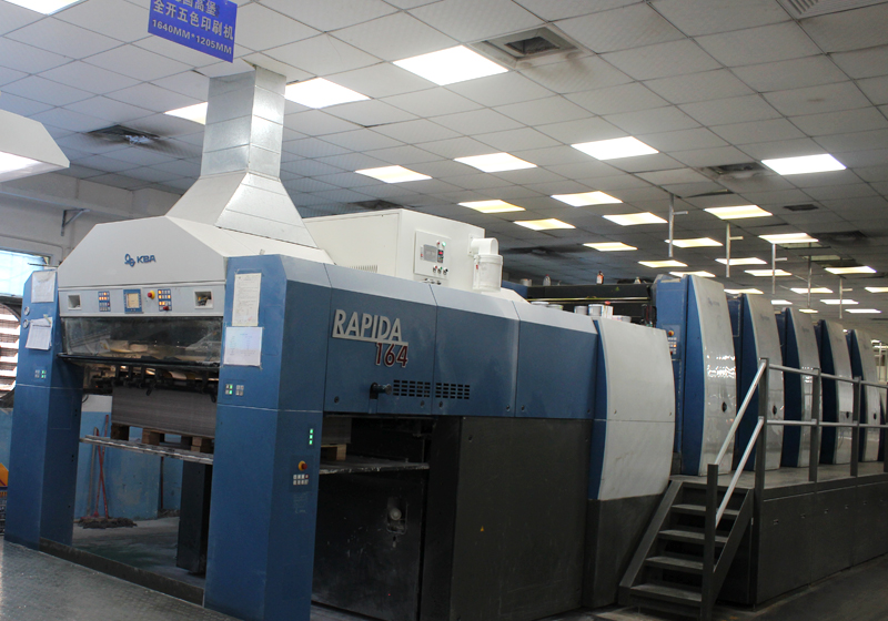 引進(jìn)德國羅蘭對(duì)開五色、羅蘭對(duì)開雙色、日本小森四開四色印刷設(shè)備,生產(chǎn)線完善